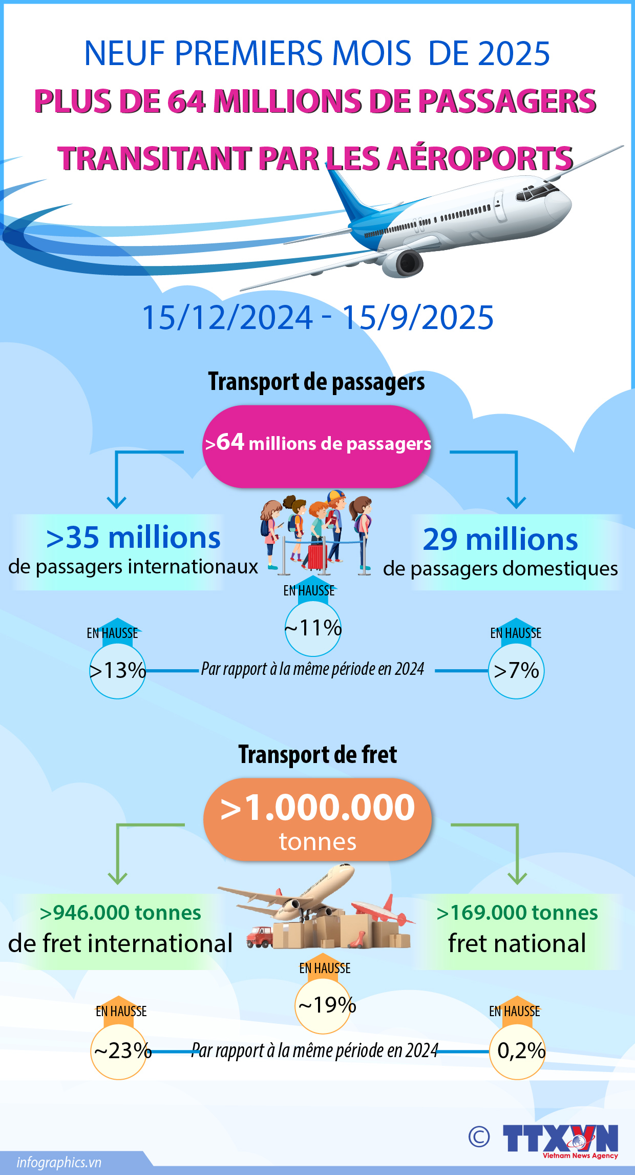 En neuf premiers mois de 2025, plus de 64 millions de passagers et plus d'un million de tonnes de fret ont été transites par les aéroports du pays.