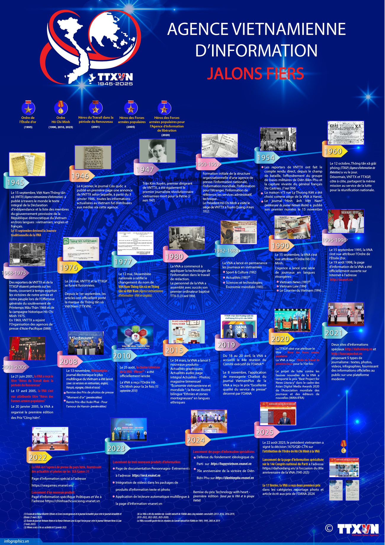 Le 15 septembre 1945, Việt Nam Thông tấn xã (aujourd'hui Thông tấn xã Việt Nam-Agence vietnamienne d'information-VNA) a officiellement diffusé, au Vietnam et dans le monde entier, la Déclaration d’indépendance historique ainsi que la liste du gouvernement provisoire, en trois langues : vietnamien, français et anglais. Cette date est devenue la Journée traditionnelle de l'agence nationale de presse.