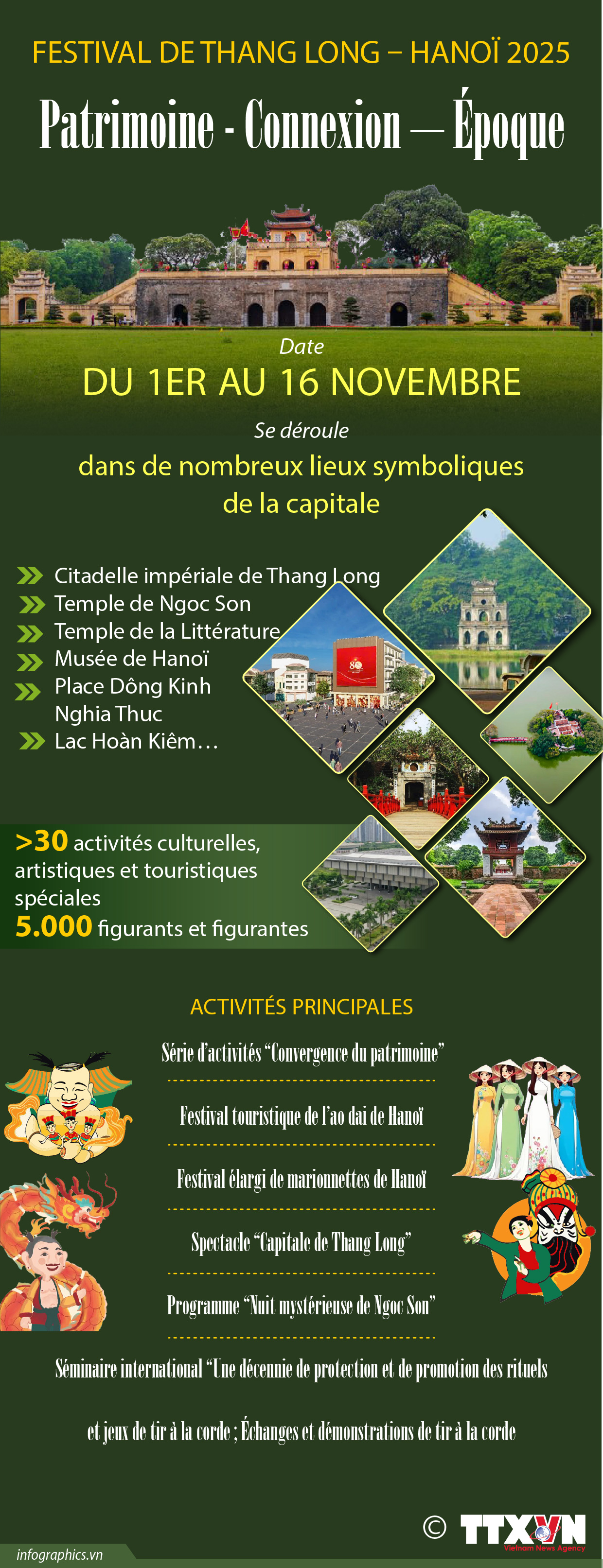 Le Festival Thang Long – Hanoi 2025 se déroulera du 1er au 16 novembre, avec plus de 30 activités diverses dans de nombreux domaines et dans différents espaces de la capitale.